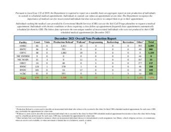 DECEMBER 2021 MEDICAL NON-PRODUCTION REPORT