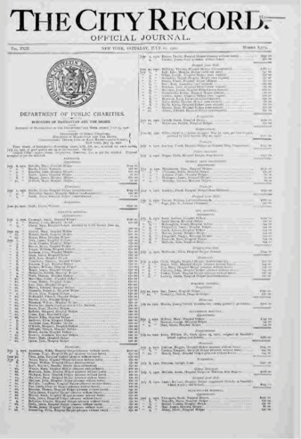 The City Record newspaper publishes notices which includes but is not limited to: public hearings and meetings, public auctions and sales, solicitations and awards and official rules proposed and adopted by city agencies. This is the City Record Newspaper for July 20, 1901.