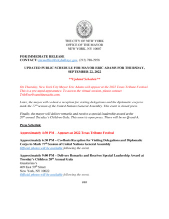 UPDATED PUBLIC SCHEDULE FOR MAYOR ERIC ADAMS FOR THURSDAY, SEPTEMBER 22, 2022