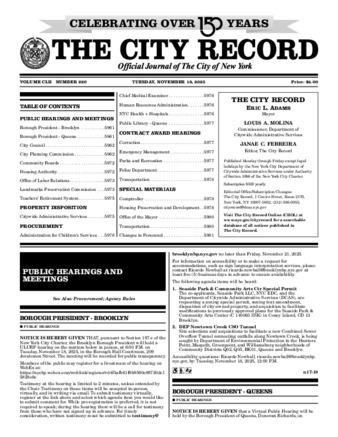 The City Record newspaper publishes notices which includes but is not limited to public hearings and meetings, public auctions and sales, solicitations and awards and official rules proposed and adopted by city agencies.