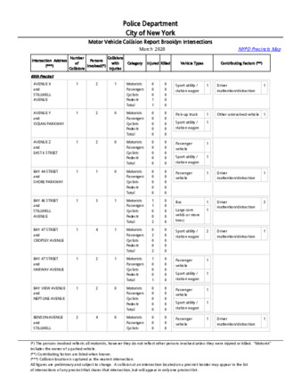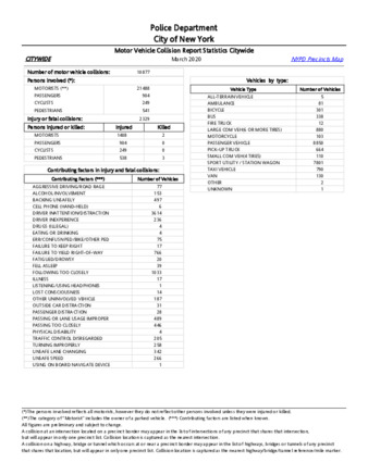 Pursuant to Admin Code Sect. 14-153(a), this monthly report contains 1) the number of moving violation summonses issued; 2) the number of traffic crashes; and 3) the number of traffic-related fatalities and injuries