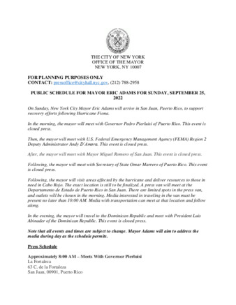 PUBLIC SCHEDULE FOR MAYOR ERIC ADAMS FOR SUNDAY, SEPTEMBER 25, 2022