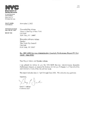 - HIV/AIDS Services Administration Quarterly Performance Report