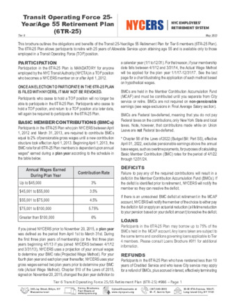 This brochure outlines the obligations and benefits of the Transit 25-Year/Age 55 Retirement Plan for Tier 6 members (6TR-25).