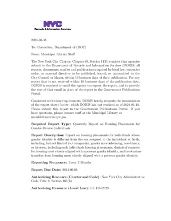 - Quarterly Report on Housing Placements for Gender-Diverse Individuals