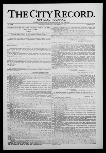 The City Record newspaper publishes notices which includes but is not limited to: public hearings and meetings, public auctions and sales, solicitations and awards and official rules proposed and adopted by city agencies. This is the City Record Newspaper for December 13, 1902.