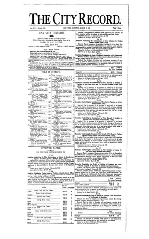 The City Record newspaper publishes notices which includes but is not limited to: public hearings and meetings, public auctions and sales, solicitations and awards and official rules proposed and adopted by city agencies. This is the City Record Newspaper for March 23, 1918.