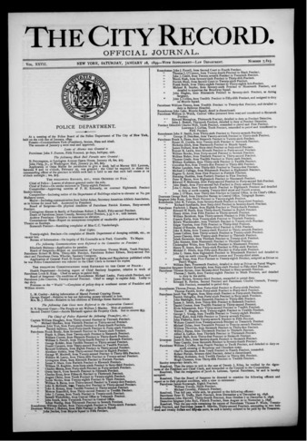 The City Record newspaper publishes notices which includes but is not limited to: public hearings and meetings, public auctions and sales, solicitations and awards and official rules proposed and adopted by city agencies. This is the City Record Newspaper for January 28, 1899.