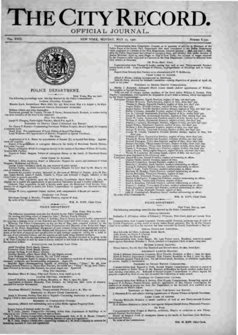 The City Record newspaper publishes notices which includes but is not limited to: public hearings and meetings, public auctions and sales, solicitations and awards and official rules proposed and adopted by city agencies. This is the City Record Newspaper for May 27, 1901.