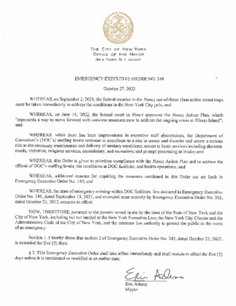 Emergency Executive Order No. 249, is being submitted to extend Emergency Executive Order No. 243, dated October 22, 2022, for five (5) days, if this relates to Rikers.