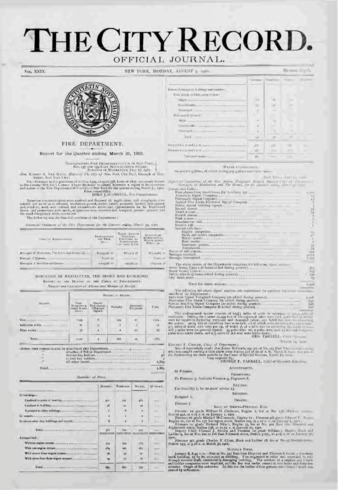 The City Record newspaper publishes notices which includes but is not limited to: public hearings and meetings, public auctions and sales, solicitations and awards and official rules proposed and adopted by city agencies. This is the City Record Newspaper for August 05, 1901.