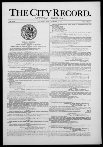 The City Record newspaper publishes notices which includes but is not limited to: public hearings and meetings, public auctions and sales, solicitations and awards and official rules proposed and adopted by city agencies. This is the City Record Newspaper for October 25, 1901.
