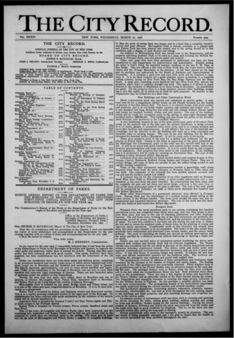 The City Record newspaper publishes notices which includes but is not limited to: public hearings and meetings, public auctions and sales, solicitations and awards and official rules proposed and adopted by city agencies. This is the City Record Newspaper for March 21, 1906.