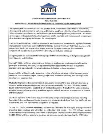 OATH Diversity & Equal Employment Opportunity Plan FY2022
