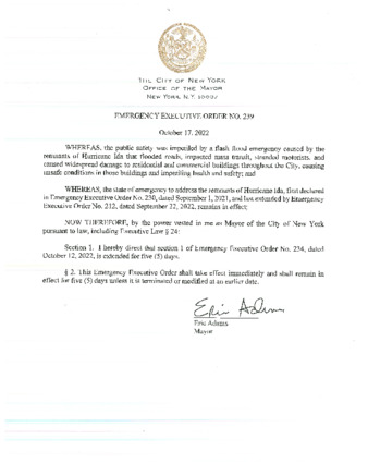 Emergency Executive Order No. 239, is being submitted to extend Emergency Executive Order No. 234, dated October 12, 2022, for five (5) days, if this relates to Hurricane Ida.