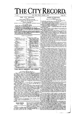 The City Record newspaper publishes notices which includes but is not limited to: public hearings and meetings, public auctions and sales, solicitations and awards and official rules proposed and adopted by city agencies. This is the City Record Newspaper for January 09, 1912.