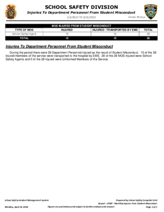 - SSD- INJURIES TO DEPT PERSONNEL FROM SCHOOL MISCONDUCT- 1ST QTR