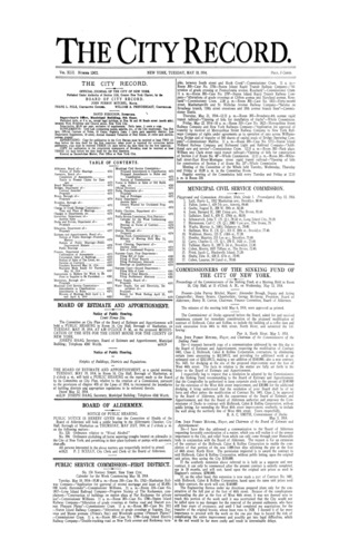 The City Record newspaper publishes notices which includes but is not limited to: public hearings and meetings, public auctions and sales, solicitations and awards and official rules proposed and adopted by city agencies. This is the City Record Newspaper for May 19, 1914.