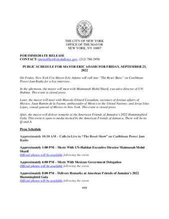 PUBLIC SCHEDULE FOR MAYOR ERIC ADAMS FOR FRIDAY, SEPTEMBER 23, 2022