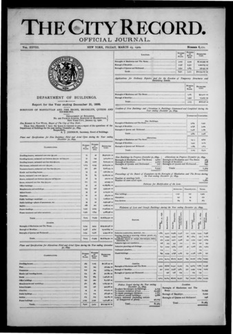 The City Record newspaper publishes notices which includes but is not limited to: public hearings and meetings, public auctions and sales, solicitations and awards and official rules proposed and adopted by city agencies. This is the City Record Newspaper for March 23, 1900.