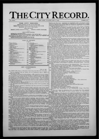 The City Record newspaper publishes notices which includes but is not limited to: public hearings and meetings, public auctions and sales, solicitations and awards and official rules proposed and adopted by city agencies. This is the City Record Newspaper for May 12, 1903.