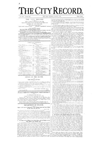 The City Record newspaper publishes notices which includes but is not limited to: public hearings and meetings, public auctions and sales, solicitations and awards and official rules proposed and adopted by city agencies. This is the City Record Newspaper for August 03, 1916.