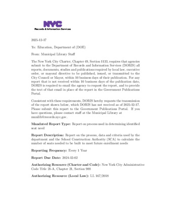 Report on the process, data and criteria used by the department and the School Construction Authority (SCA) to calculate the number of seats needed to be built to meet future enrollment needs