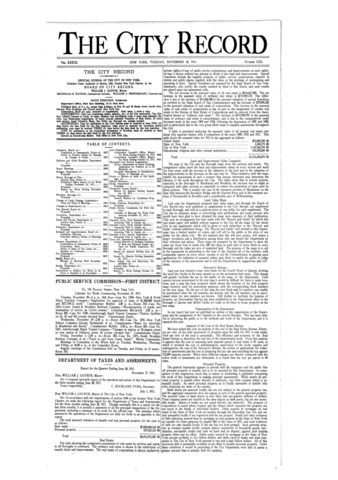 The City Record newspaper publishes notices which includes but is not limited to: public hearings and meetings, public auctions and sales, solicitations and awards and official rules proposed and adopted by city agencies. This is the City Record Newspaper for November 28, 1911.