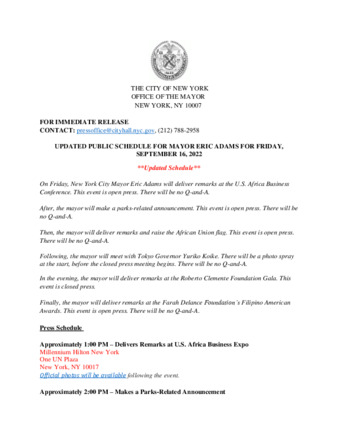 UPDATED PUBLIC SCHEDULE FOR MAYOR ERIC ADAMS FOR FRIDAY, SEPTEMBER 16, 2022