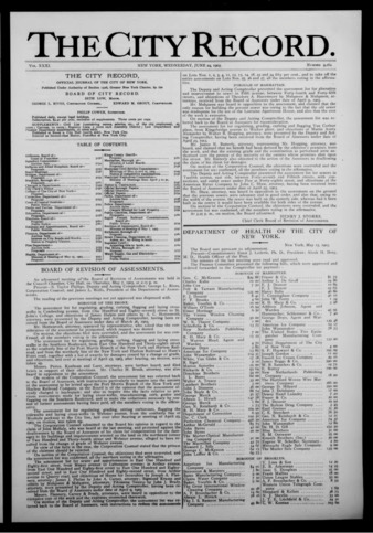 The City Record newspaper publishes notices which includes but is not limited to: public hearings and meetings, public auctions and sales, solicitations and awards and official rules proposed and adopted by city agencies. This is the City Record Newspaper for June 24, 1903.