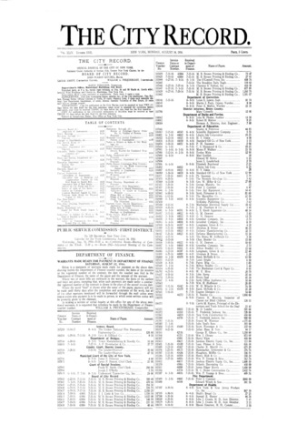 The City Record newspaper publishes notices which includes but is not limited to: public hearings and meetings, public auctions and sales, solicitations and awards and official rules proposed and adopted by city agencies. This is the City Record Newspaper for August 14, 1916.