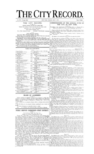 The City Record newspaper publishes notices which includes but is not limited to: public hearings and meetings, public auctions and sales, solicitations and awards and official rules proposed and adopted by city agencies. This is the City Record Newspaper for May 05, 1914.