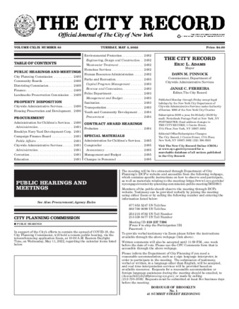 The City Record newspaper publishes notices which includes but is not limited to public hearings and meetings, public auctions and sales, solicitations and awards and official rules proposed and adopted by city agencies.