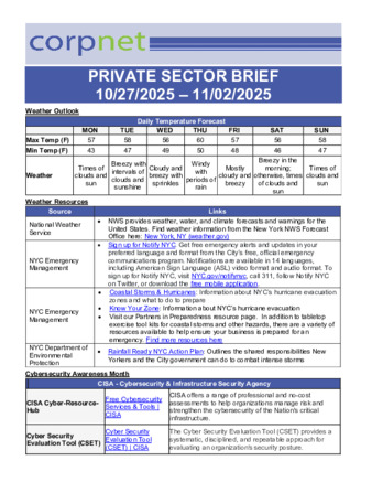 - NYCEM CorpNet Public-Private Sector Weekly Incident Brief 10-27-25