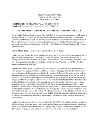 Mayor's Press Release: MAYOR DE BLASIO APPEARS ON INSIDE CITY HALL