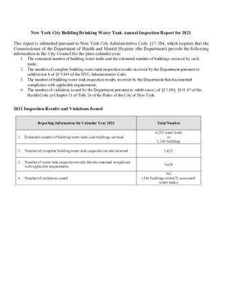 New York City Building Drinking Water Tank Inspection Report for 2021