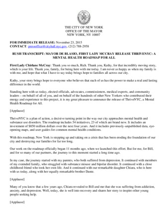 Mayor's Press Release: MAYOR DE BLASIO, FIRST LADY MCCRAY RELEASE THRIVENYC: A MENTAL HEALTH ROADMAP FOR ALL