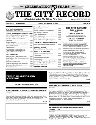 The City Record newspaper publishes notices which includes but is not limited to public hearings and meetings, public auctions and sales, solicitations and awards and official rules proposed and adopted by city agencies.