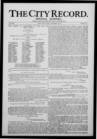 The City Record newspaper publishes notices which includes but is not limited to: public hearings and meetings, public auctions and sales, solicitations and awards and official rules proposed and adopted by city agencies. This is the City Record Newspaper for December 26, 1902.