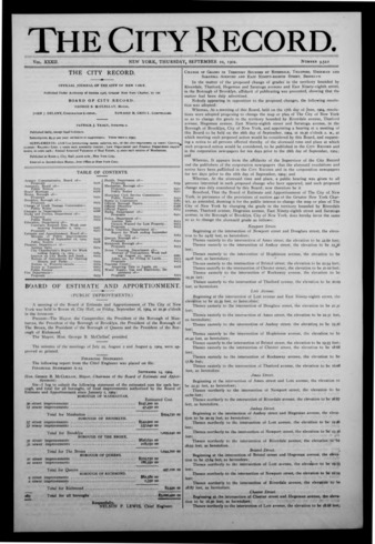 The City Record newspaper publishes notices which includes but is not limited to: public hearings and meetings, public auctions and sales, solicitations and awards and official rules proposed and adopted by city agencies. This is the City Record Newspaper for September 22, 1904.