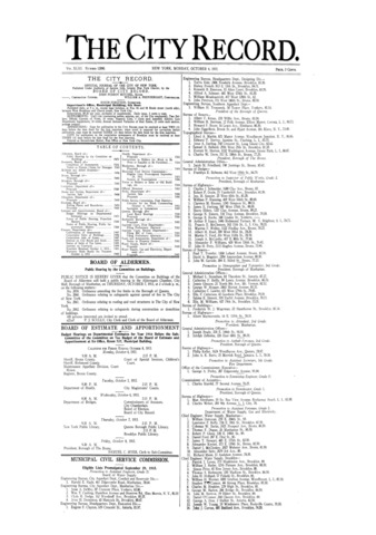 The City Record newspaper publishes notices which includes but is not limited to: public hearings and meetings, public auctions and sales, solicitations and awards and official rules proposed and adopted by city agencies. This is the City Record Newspaper for October 04, 1915.