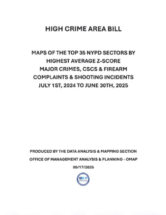 Report for the prior fiscal year identifying the top 35 priority areas including a map of each priority area and the total number of major felonies reported within each such priority area, disaggregated by the type of crime committed. Such report shall include a comparison of the number of major fel