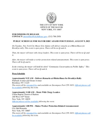 PUBLIC SCHEDULE FOR MAYOR ERIC ADAMS FOR TUESDAY, AUGUST 9, 2022