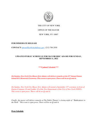 UPDATED PUBLIC SCHEDULE FOR MAYOR ERIC ADAMS FOR SUNDAY, SEPTEMBER 11, 2022