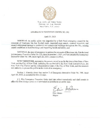 Emergency Executive Order No. 392, is being submitted to replace Emergency Executive Order No. 388, dated April 20, 2023, for five (5) days, if this relates to Hurricane Ida.