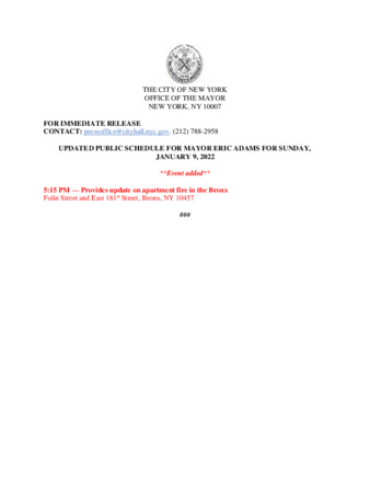 UPDATED PUBLIC SCHEDULE FOR MAYOR ERIC ADAMS FOR SUNDAY, JANUARY 9, 2022