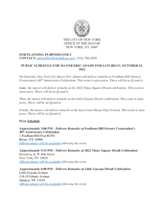 PUBLIC SCHEDULE FOR MAYOR ERIC ADAMS FOR SATURDAY, OCTOBER 15, 2022