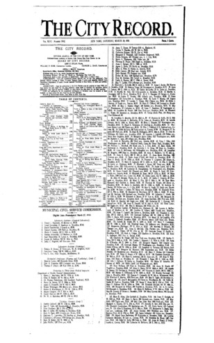 The City Record newspaper publishes notices which includes but is not limited to: public hearings and meetings, public auctions and sales, solicitations and awards and official rules proposed and adopted by city agencies. This is the City Record Newspaper for March 30, 1918 with supplement.