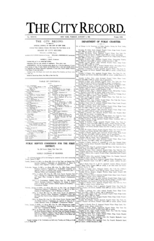 The City Record newspaper publishes notices which includes but is not limited to: public hearings and meetings, public auctions and sales, solicitations and awards and official rules proposed and adopted by city agencies. This is the City Record Newspaper for January 04, 1910.