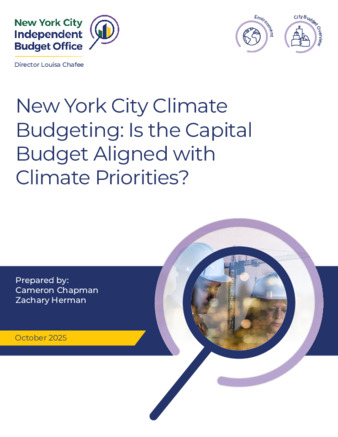 The New York City Independent Budget Office's report "New York City Climate Budgeting: Is the Capital Budget Aligned with Climate Priorities?" analyzes the alignment of City capital spending with climate goals using data from OMB’s Climate Alignment Assessment, which is part of the Climate Budgeting